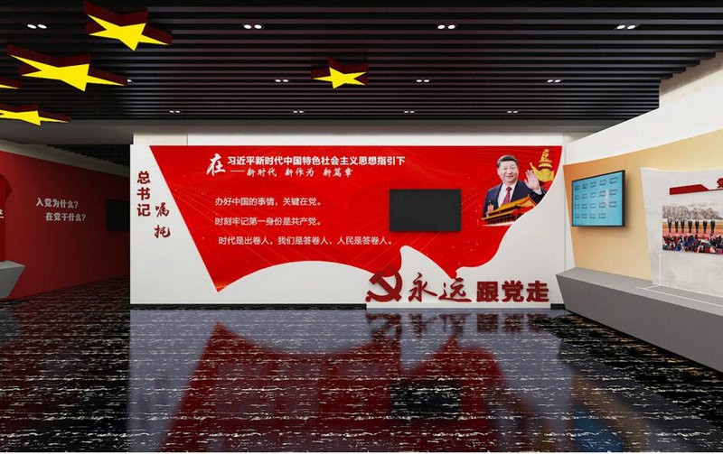 黨建展廳在時代的發展洪流當中,要想得到穩定的發展,那么要緊跟政策和時代的潮流,利用人們信仰的力量去團結群眾,去凝聚眾人的熱情。黨建展廳是現在黨建工作當中重要的一項工作。黨建展廳設計重要的一點就是要主題鮮明,這樣的展廳是不需要過多的藝術和時尚元素進行裝飾的,重要的是呈現紅色的主題內容,在弘揚主流價值觀的同時,去刷新人們的思想。